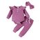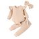 Baby clothing solid color casual pit strip long sleeve small flying sleeve one-piece harshirt trousers three-piece bow headscarf