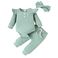 HomeMother & KidsBaby Boys' ClothingBaby clothing solid color casual pit strip long sleeve small flying sleeve one-piece harshirt trousers three-piece bow headscarf