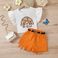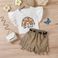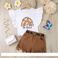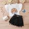 HomeMother & KidsToddler Girls' ClothingBaby Clothing Children's And Girls' Solid Color Flying Sleeve Ruffled Crew-neck Printed Whisker Shorts Belt Three-piece Set