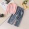 Kids Clothing Girls Suit Autumn New Girls Long Sleeved Round Neck Waist Top Jeans Two Piece Suit